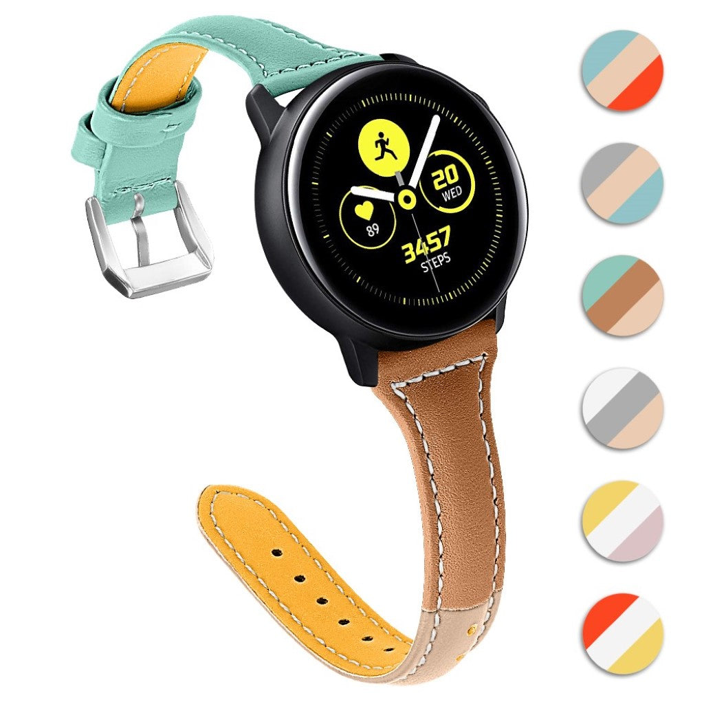 22mm Huawei Watch GT / Samsung Galaxy Watch (46mm) tri-color Echtes Lederarmband - Grün / Coffee / Apricot