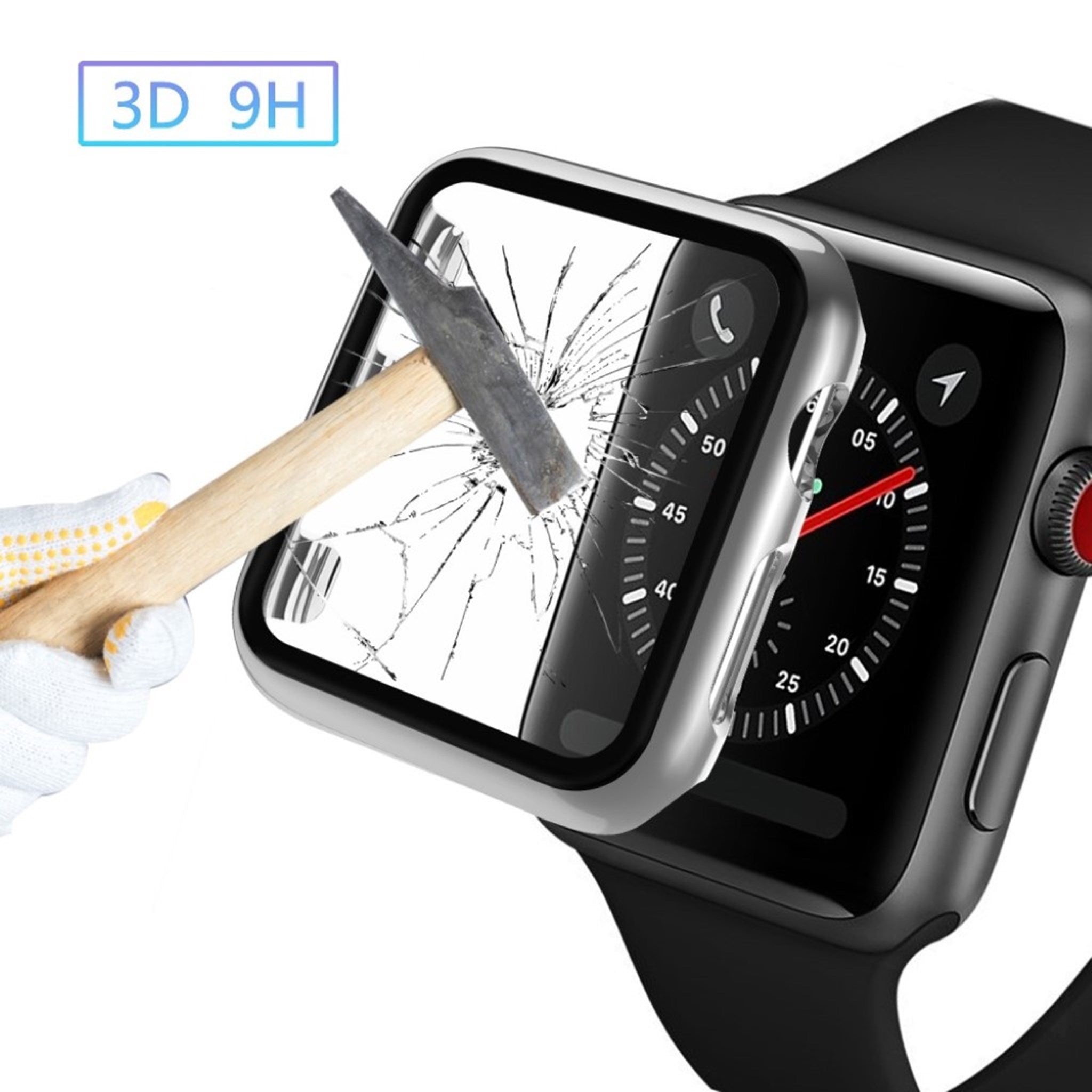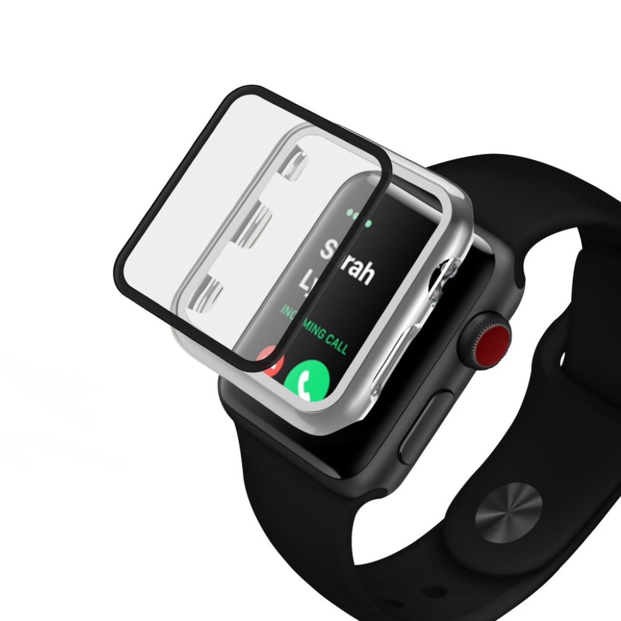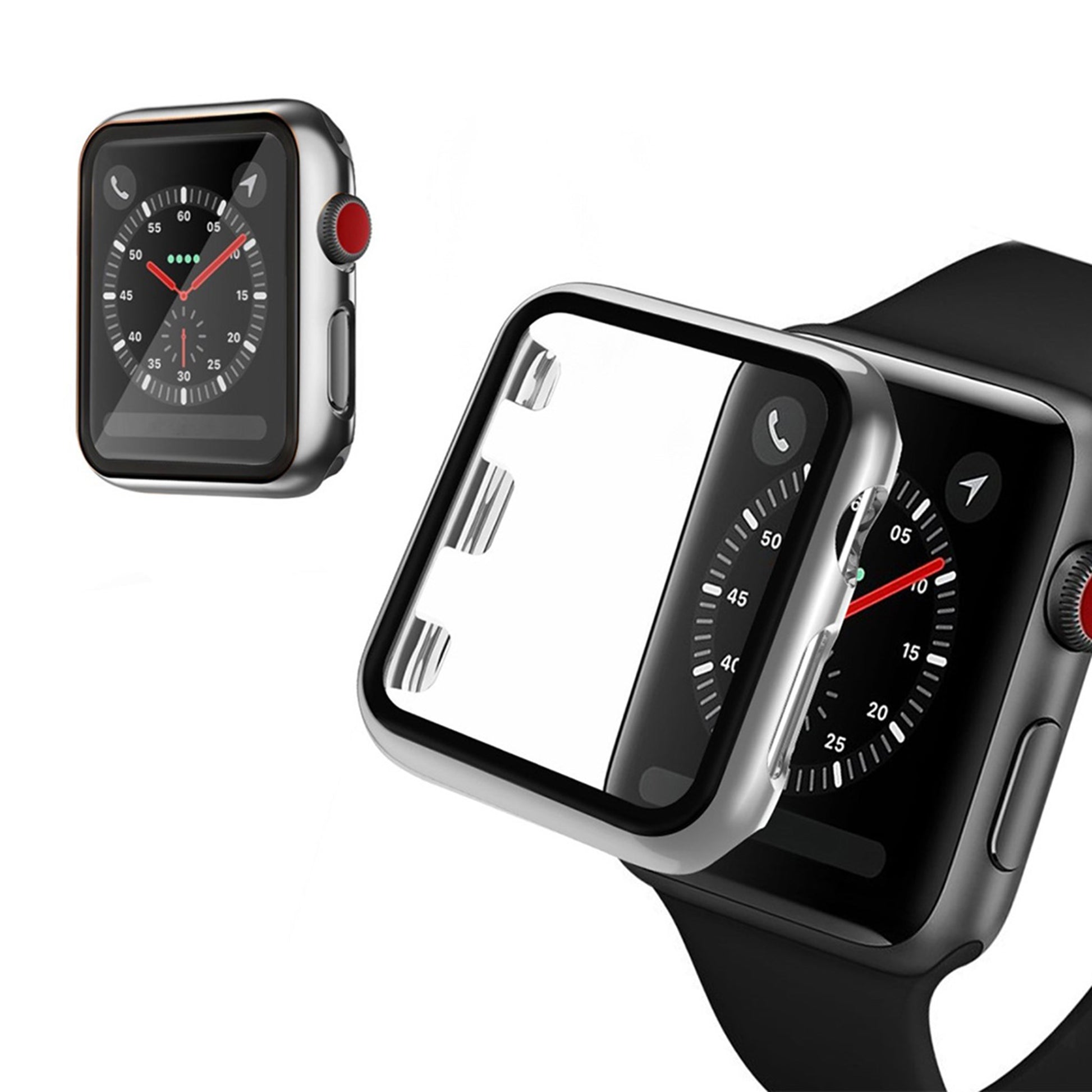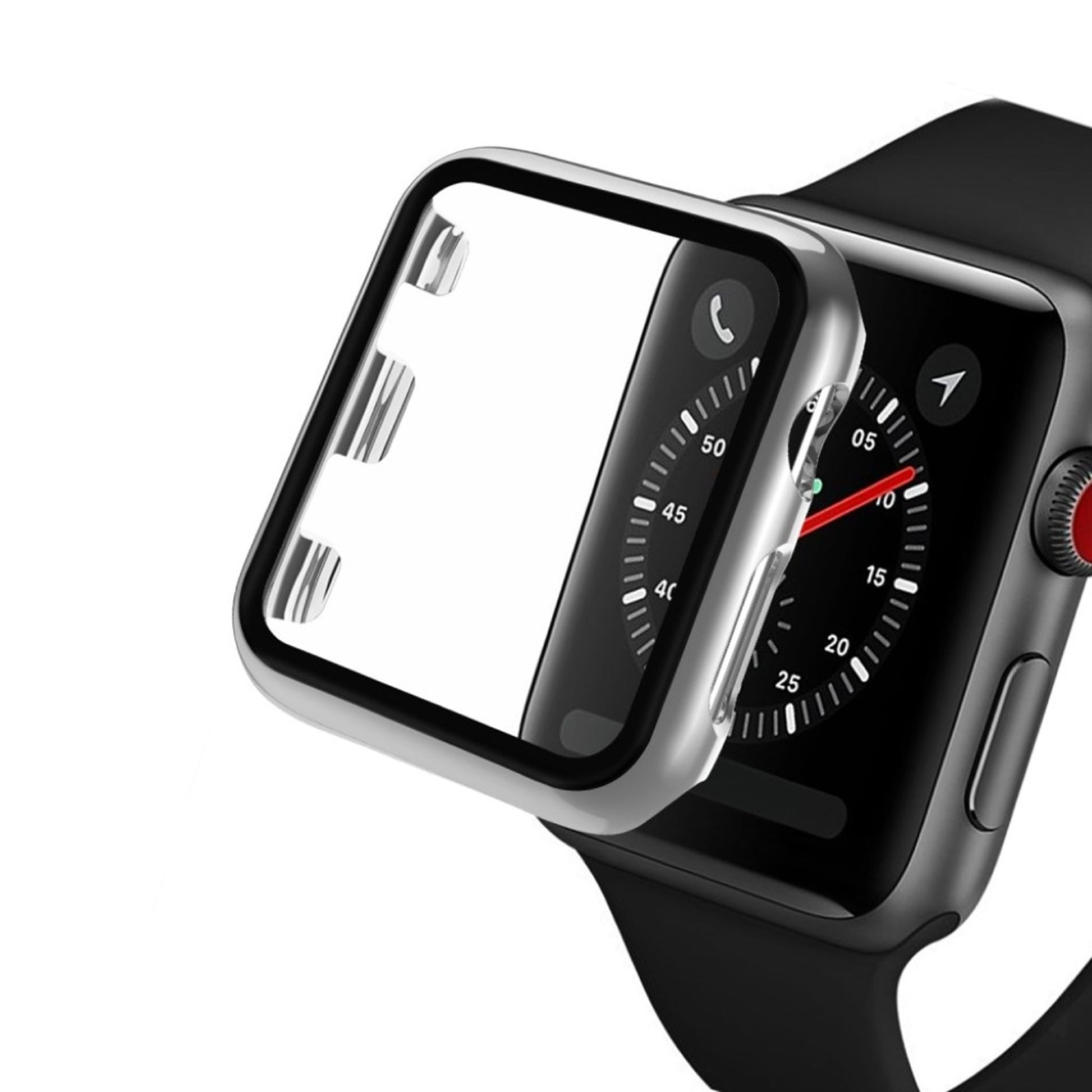 Apple Watch Series 3 / 2 / 1 42mm Galvanik Rahmen mit Gehärtetes Glas - Silber