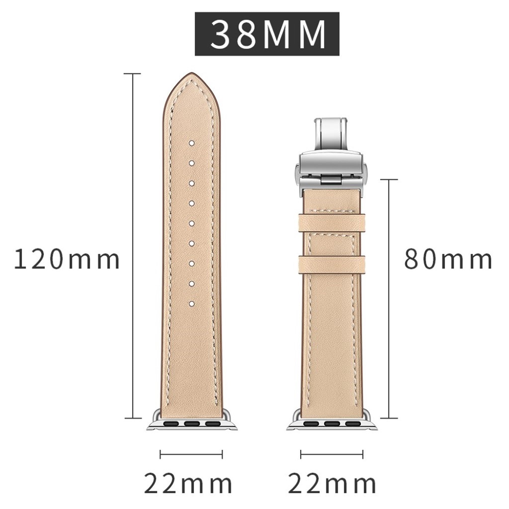 Apple Watch Series 5 40mm Haltbar Echt Leder Uhrenarmband - Silberne Schnalle / Apricot