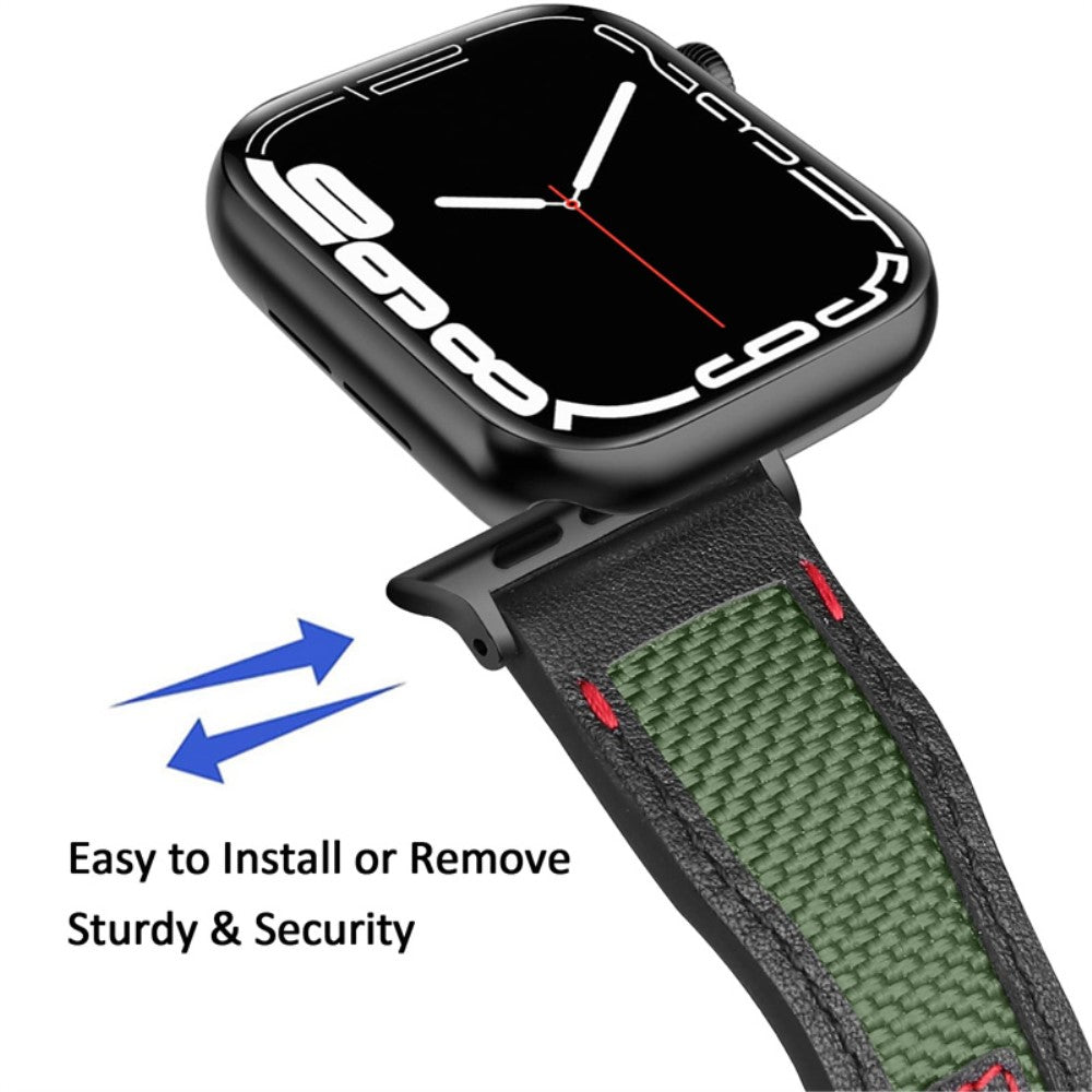 Apple Watch Series 8 (41mm) Nylon mit Rindslederarmband - Army Green / Schwarze Schnalle