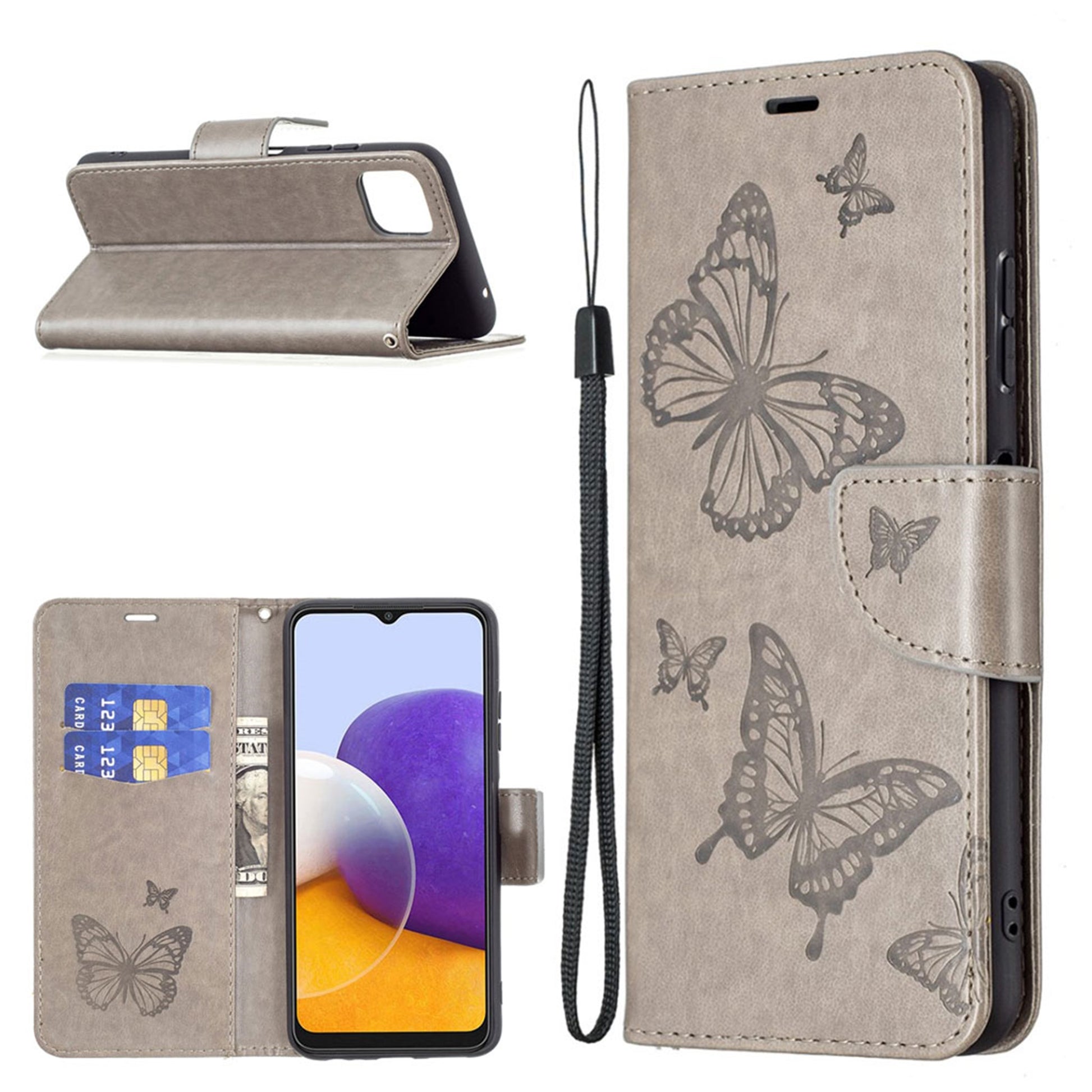 Butterfly Samsung Galaxy A22 5G Leder hülle - Grau