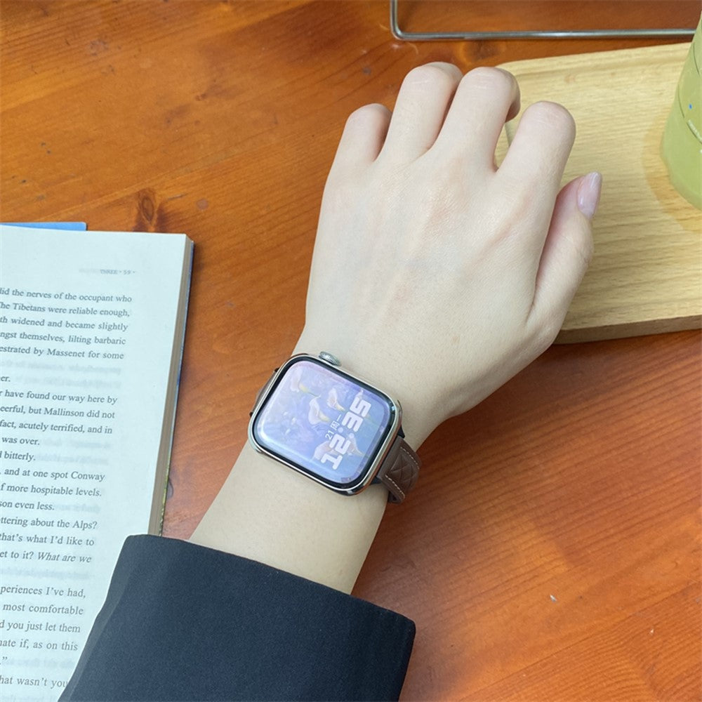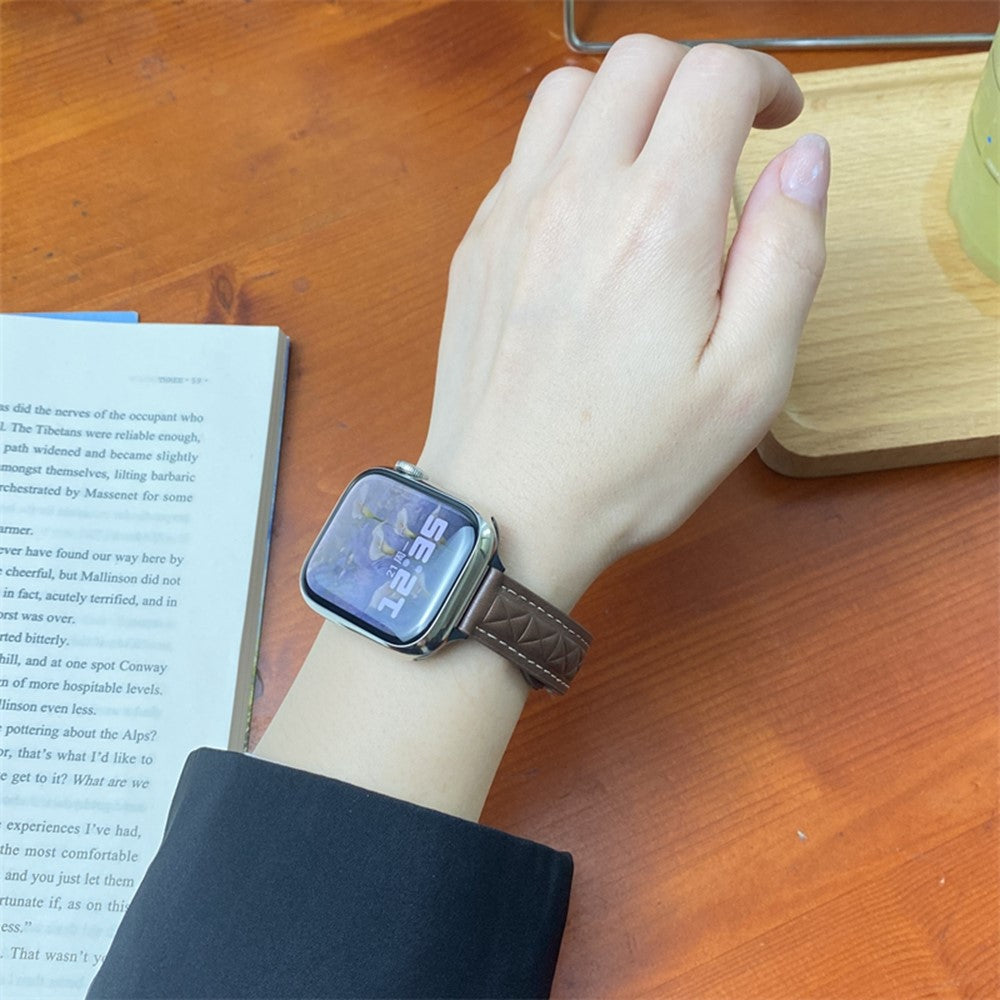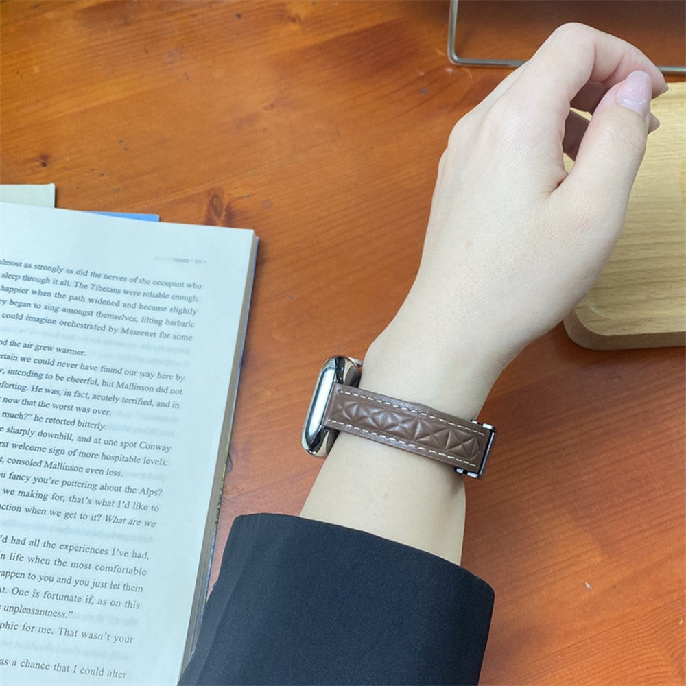 Echtes Lederarmband Uhrenarmband Apple Watch Series 10 42mm Armband mit magnetischer Doppel-C-Schnalle - Tan