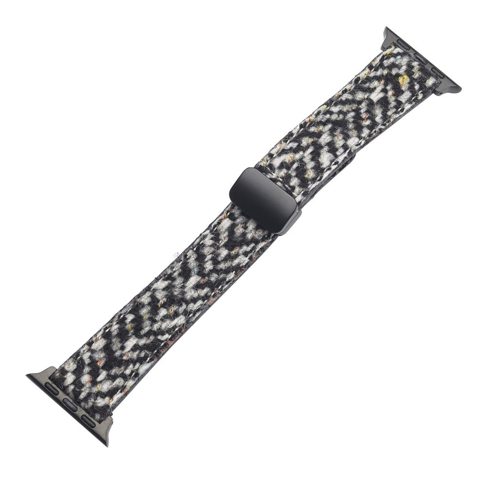 Echtes Rindsleder+Wolle Uhrenarmband Apple Watch Series 10 42mm Armband - Schwarz