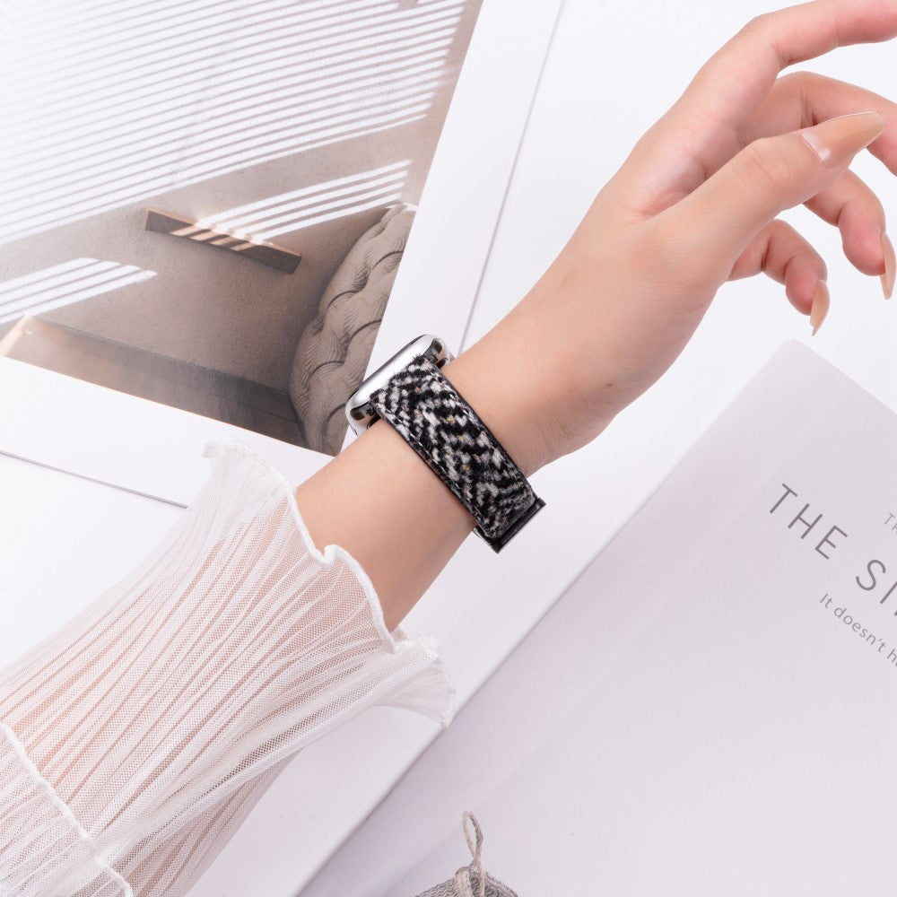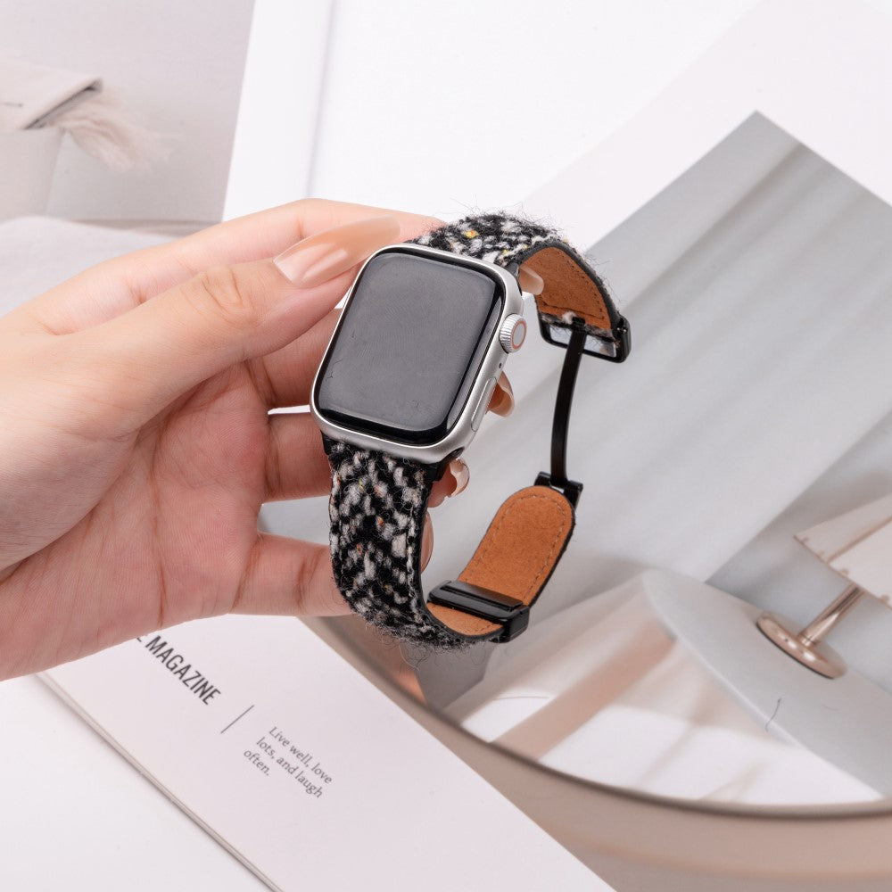 Unterstreiche deinen persönlichen Stil mit diesem exquisiten Uhrenarmband, das aus einer erstklassigen Kombination aus luxuriöser Wolle und echtem Rindsleder gefertigt wurde und für unvergleichlichen Komfürt und lange Haltbarkeit sorgt. Dieses vielseitige Armband lässt sich leicht verstellen und passt sich an verschiedene Handgelenksgrößen an, so dass es den meisten Trägern passt. Egal, ob du ins Büro gehst, an einem Geschäftstreffen teilnimmst oder bei einer fürmellen Veranstaltung ein Zeichen setzen willst, dieses Armband passt sich nahtlos an jede Gelegenheit an und verwandelt deine schlichte Uhr in ein modisches Accessoire, das die Aufmerksamkeit auf sich zieht. Mit einer Reihe von Farben kannst du deine Smartwatch mühelos personalisieren, um deinen einzigartigen Stil und deine Vorlieben widerzuspiegeln. Bitte beachte, dass Personen, die empfindlich auf Materialien wie Metall, Nickel, Zink, Leder oder Silikon reagieren, ihre Wahl vor dem Kauf sorgfältig abwägen sollten. Dieses Armband ist für diejenigen gedacht, die Raffinesse und Handwerkskunst zu schätzen wissen.