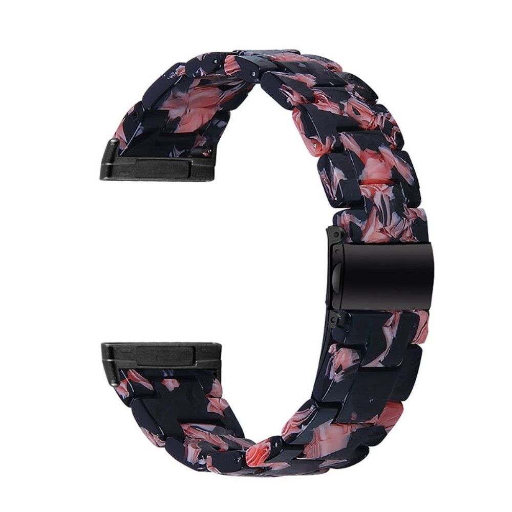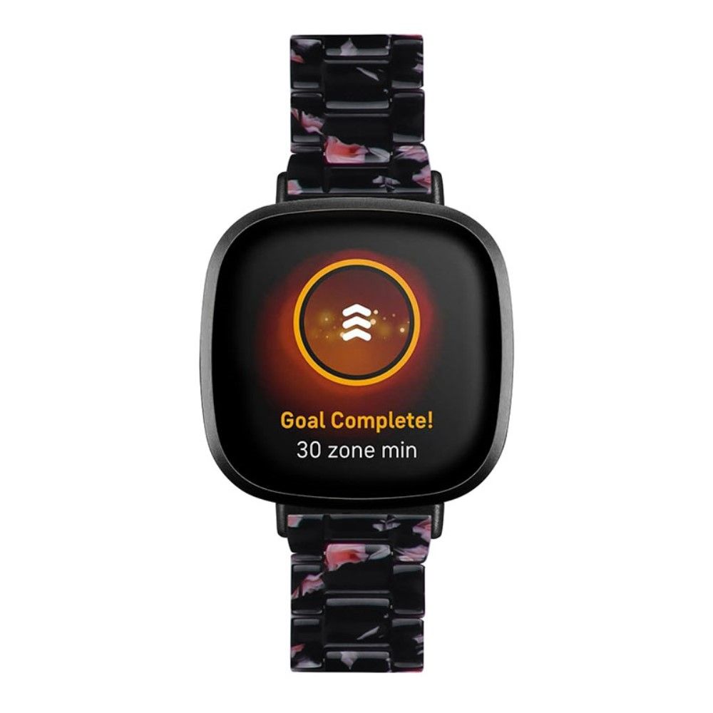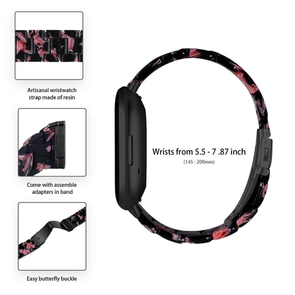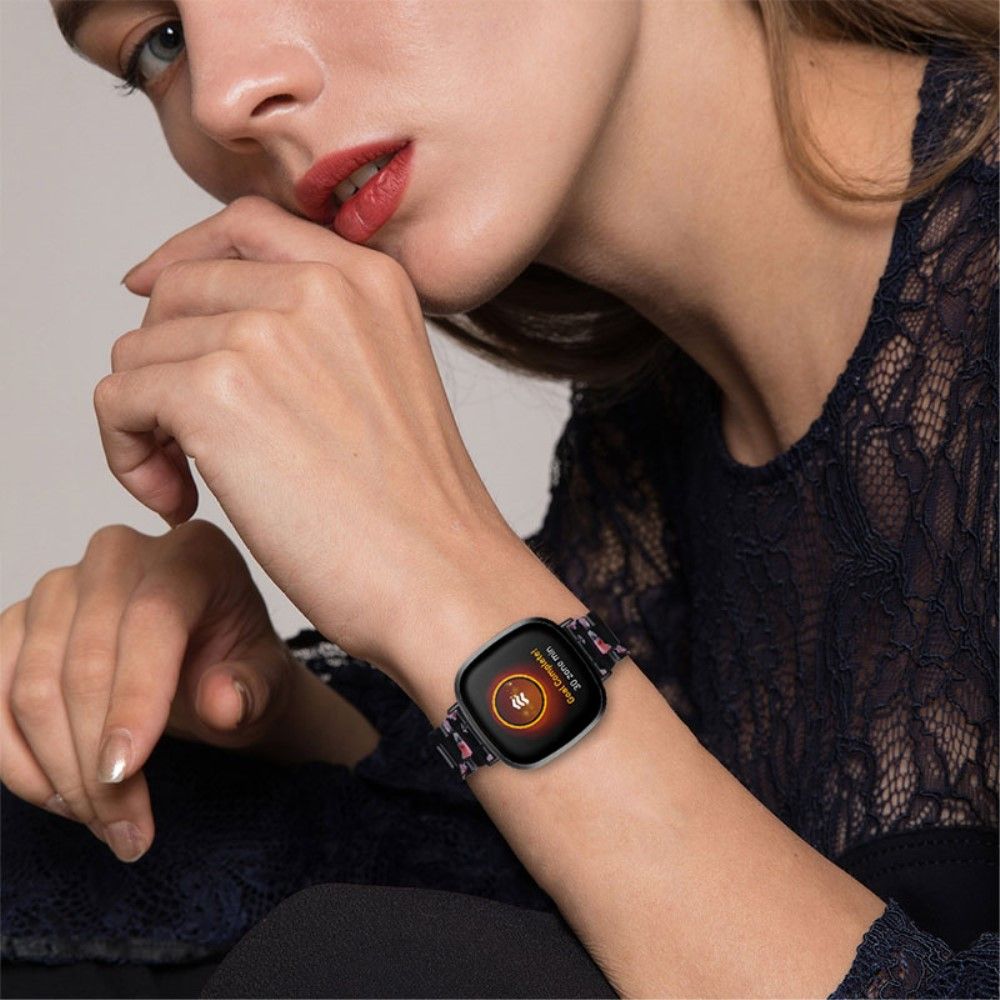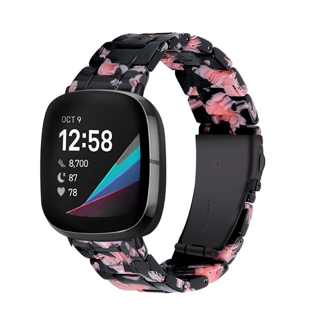 Fitbit Sense / Versa 3 Resin Perlen Uhrenarmband - Schwarz / Rosa Blumen