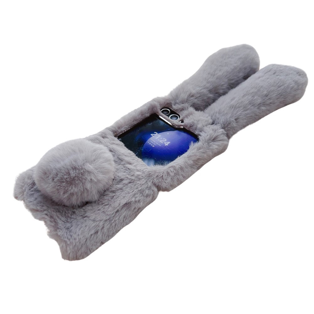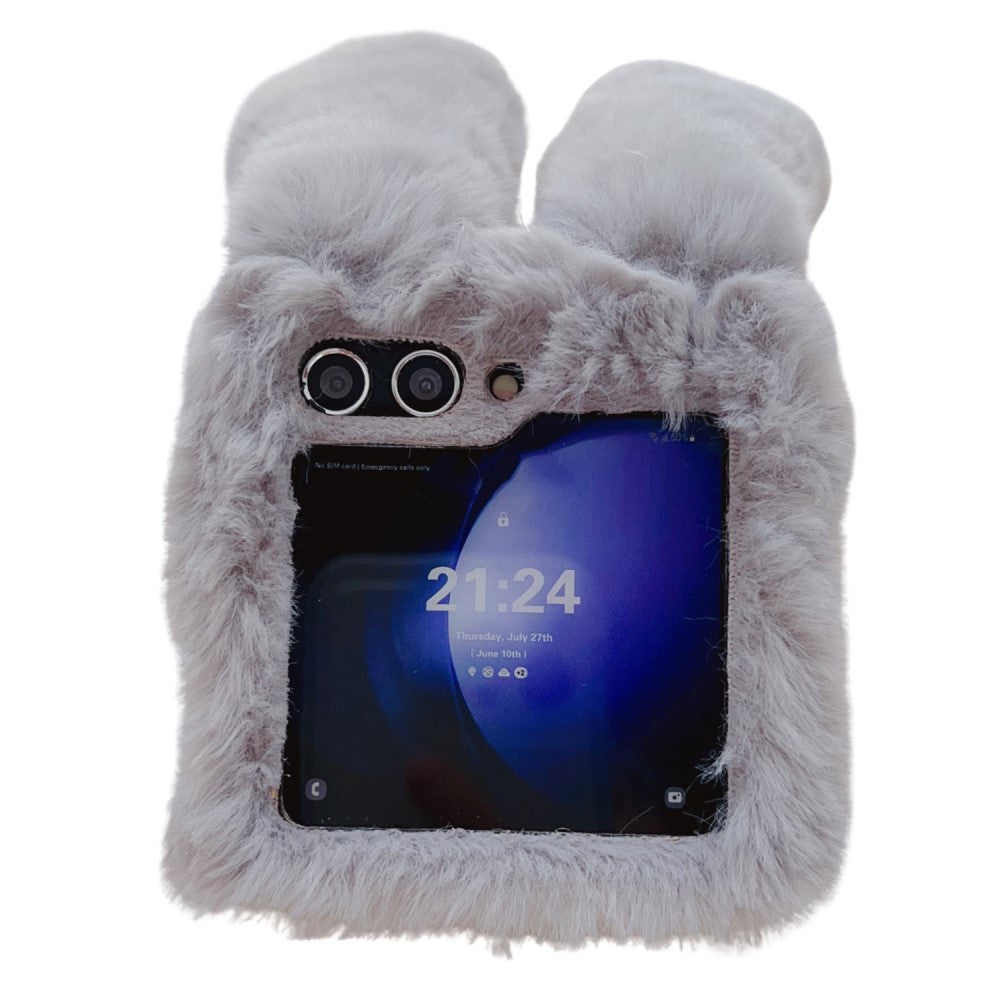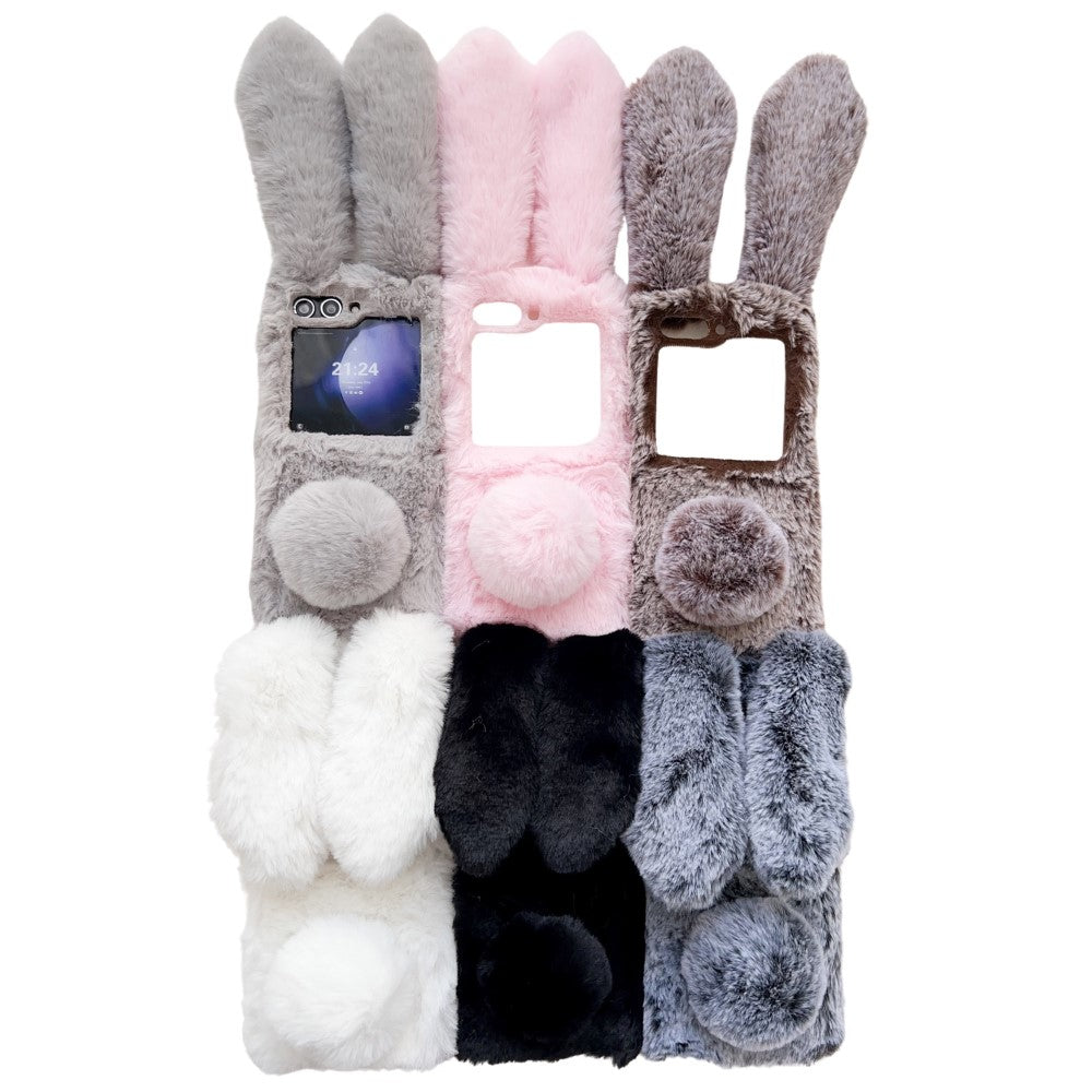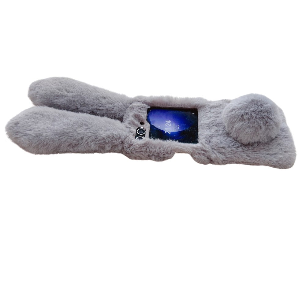 Flauschige handyhülle im Kaninchenstil Samsung Galaxy Z Flip. Super süße, pelzbeschichtete Hasenhülle mit großen Hasenohren und einem Schwanz, der gleichzeitig als Kickstand dient.