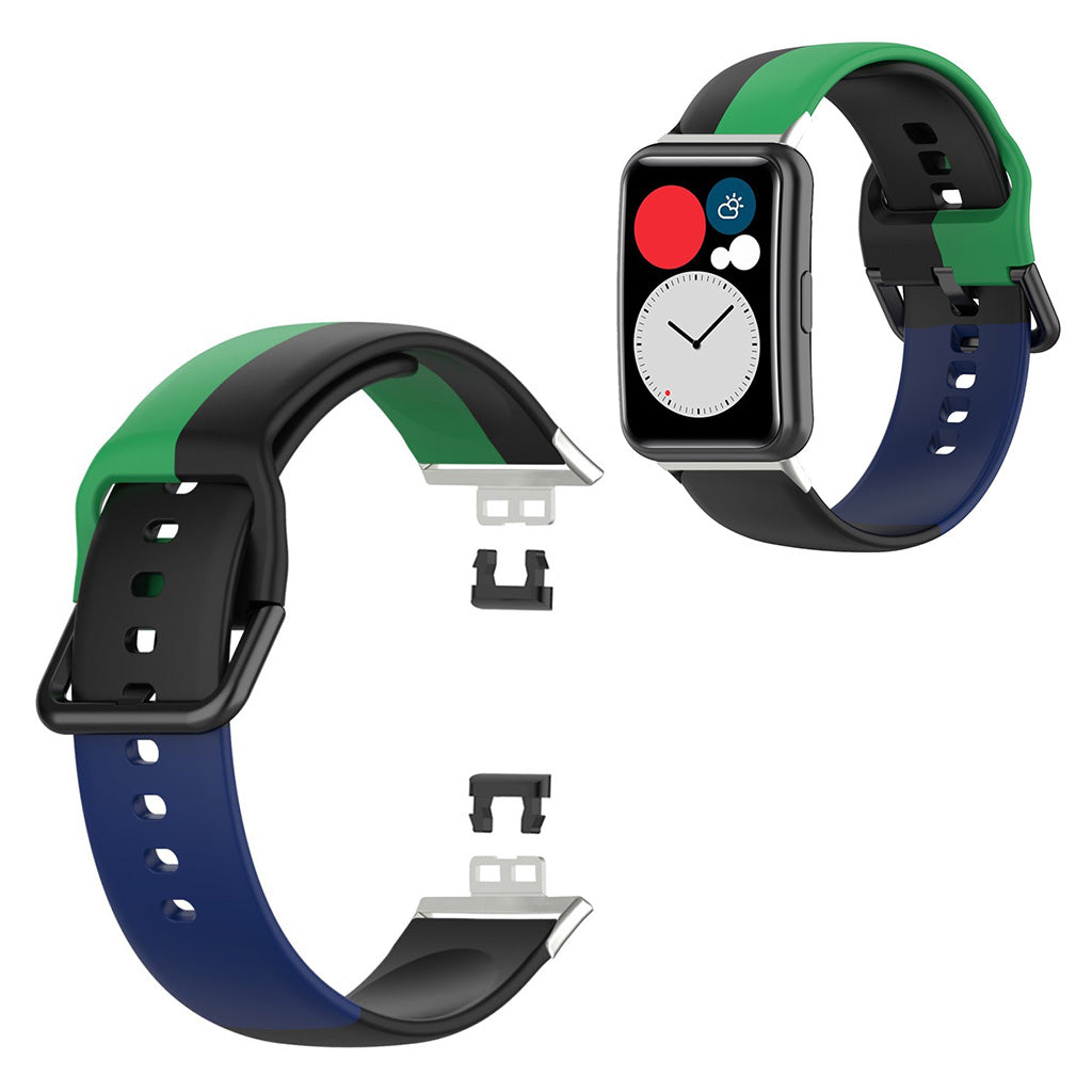 Huawei Watch Fit Drei Farbe Silikon Uhrenarmband - Schwarz / Grün / Blau