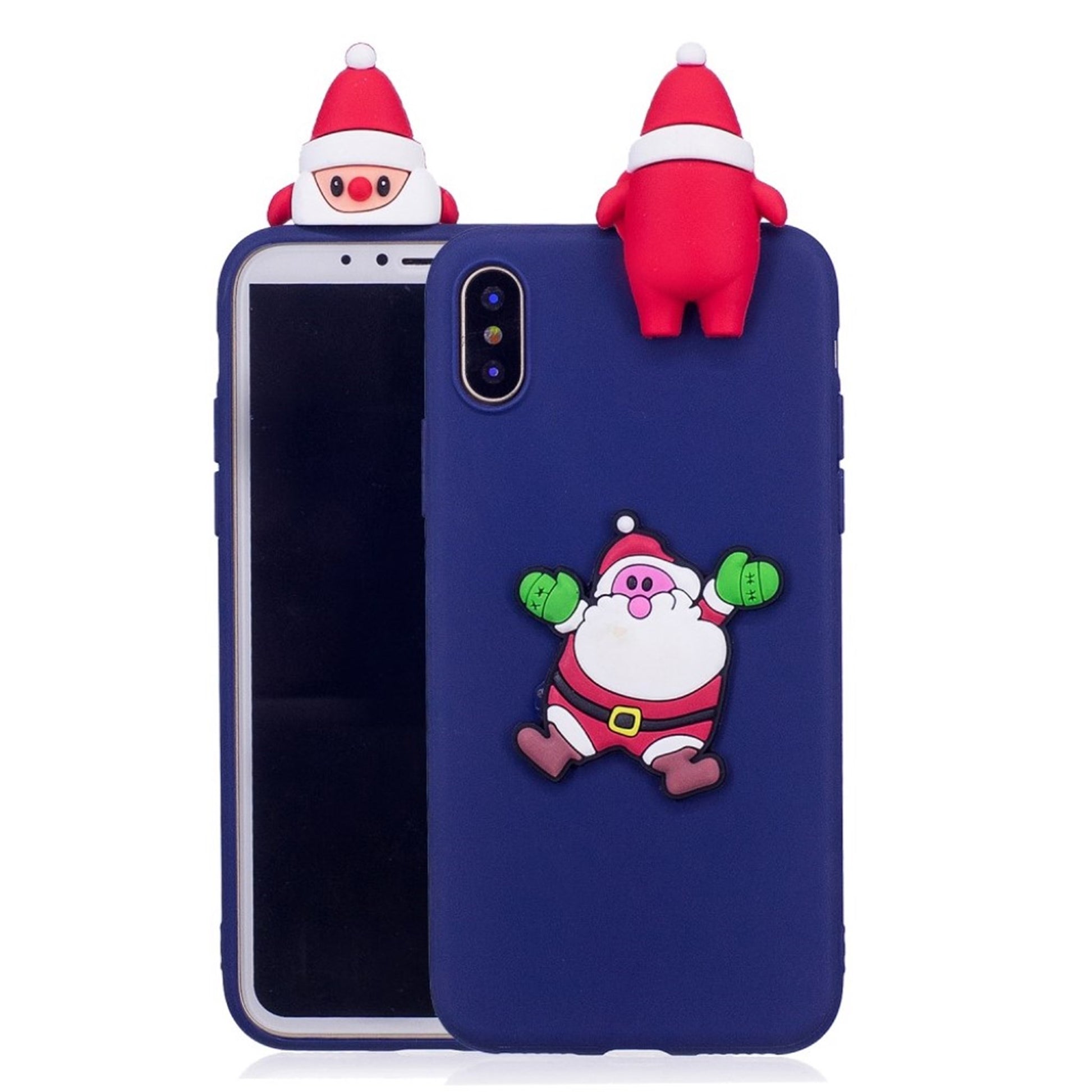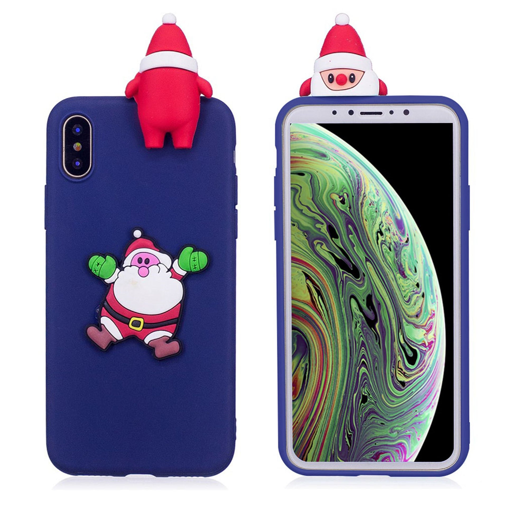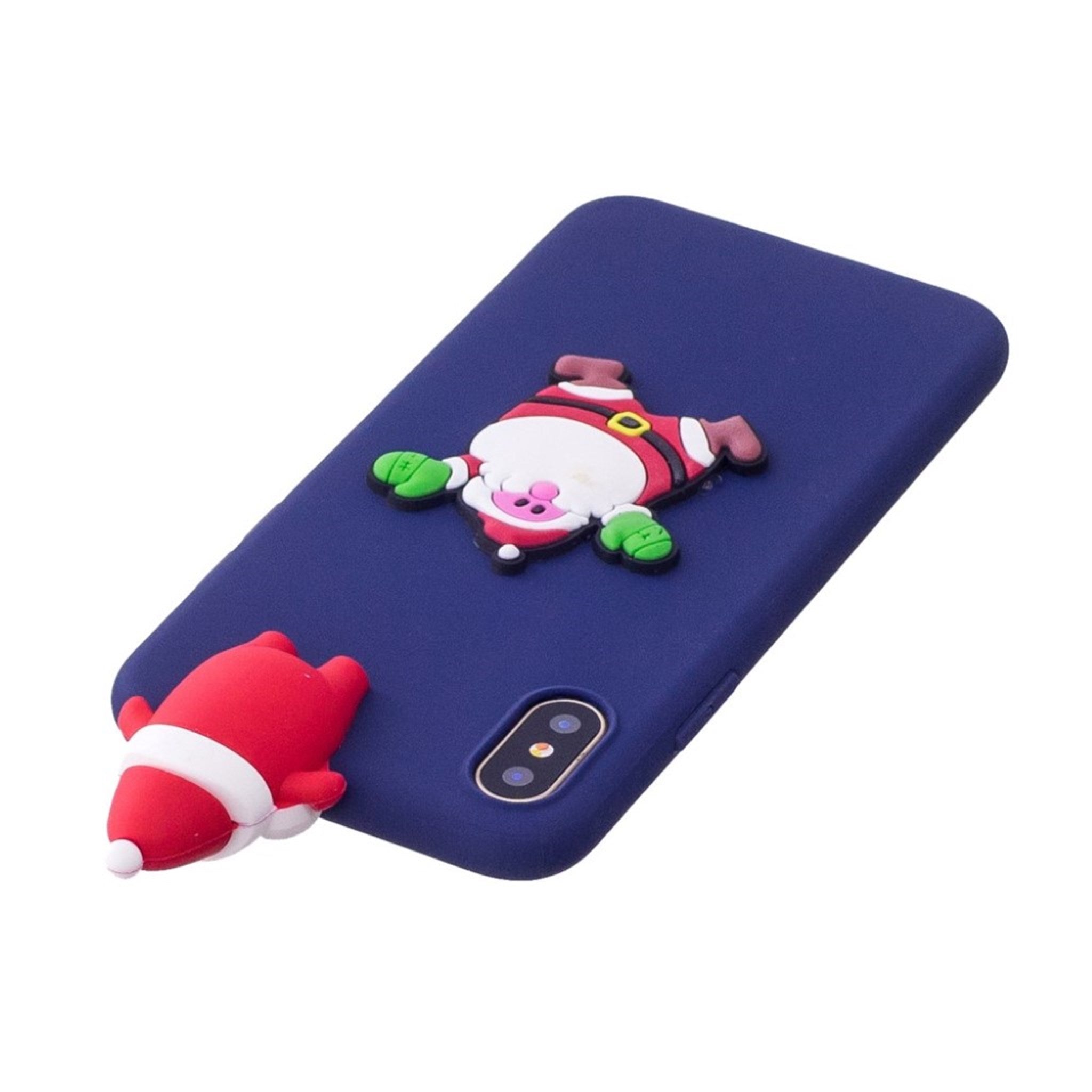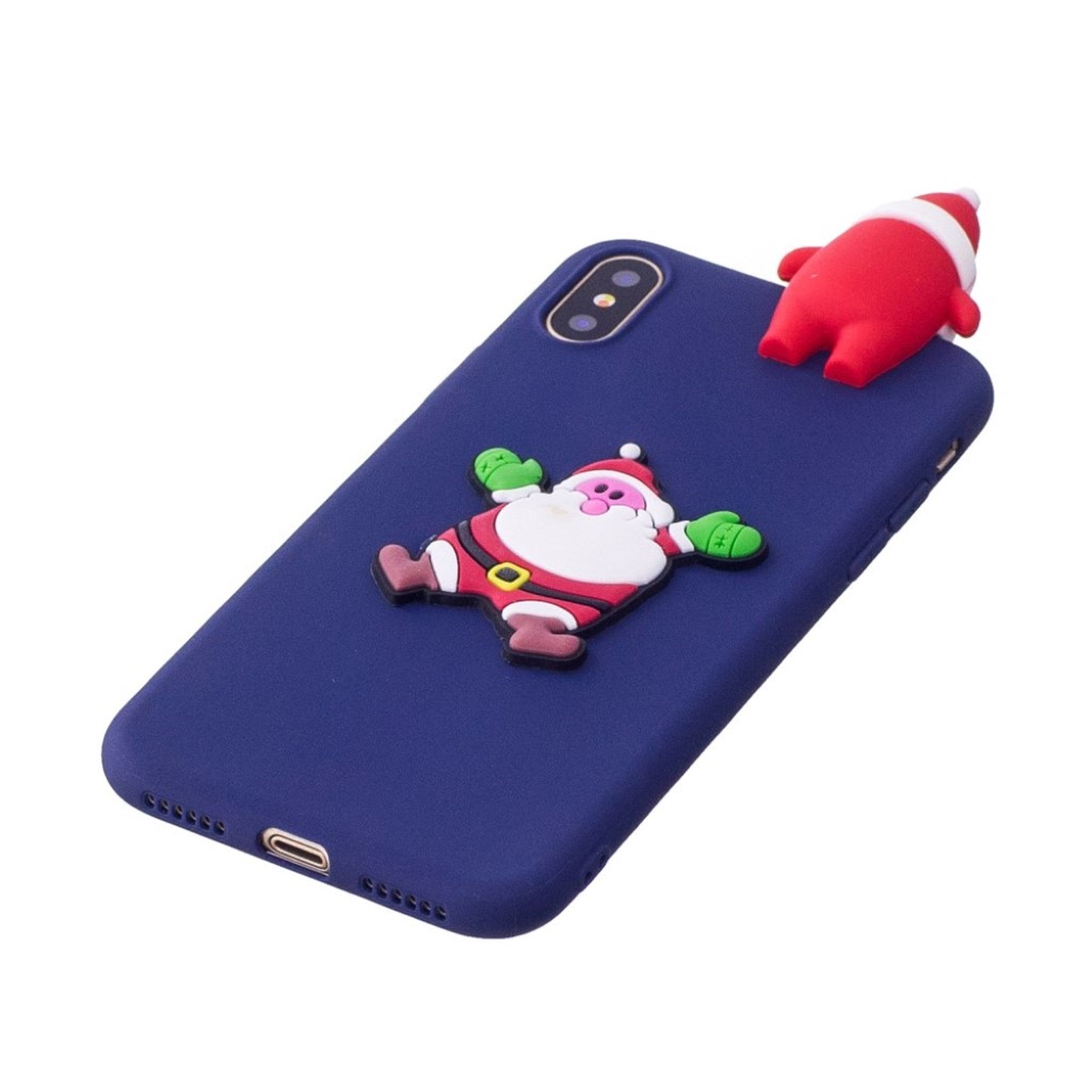 iPhone XS 3D christmas Muster Hülle - Blau Background mit Santa Claus