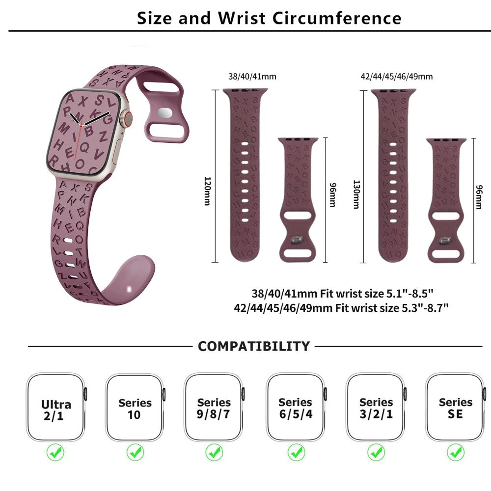 KALEBOL Alphabet Silikonarmband Apple Watch Series 10 46mm Epoxy Band - Lila + Rot