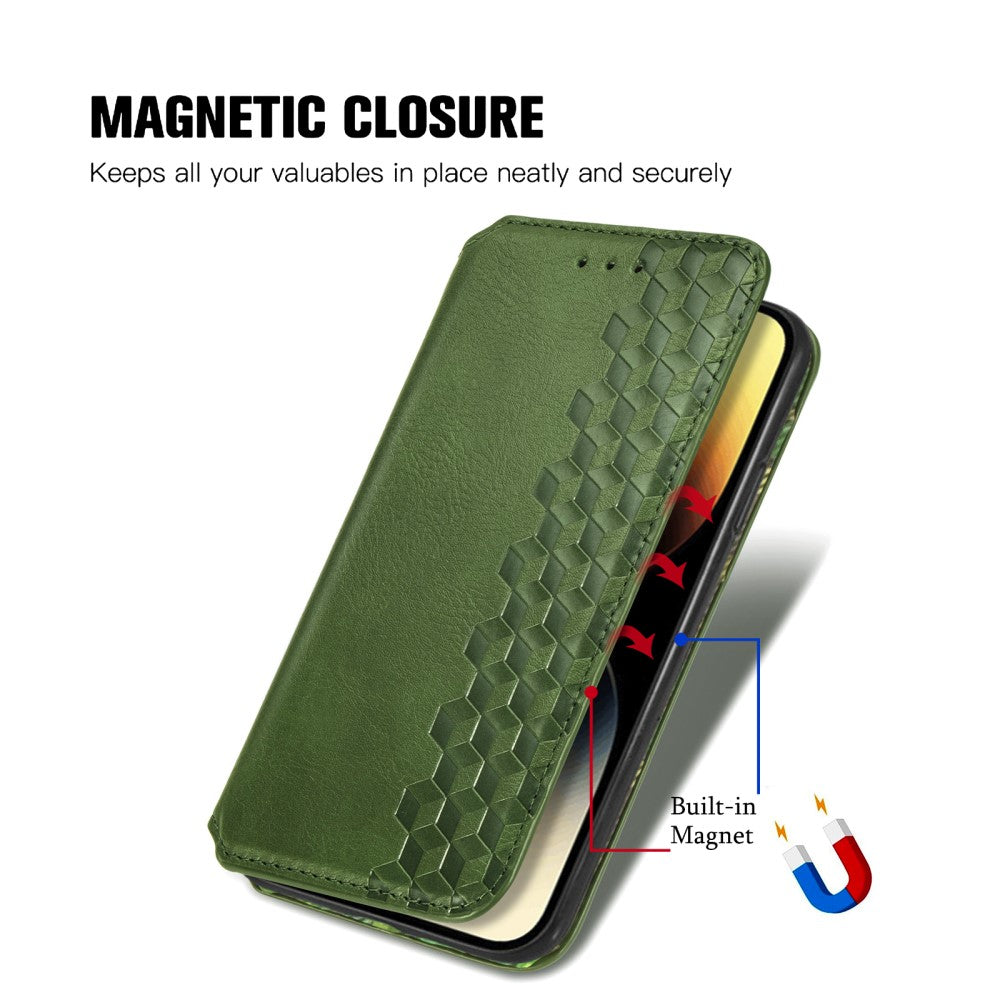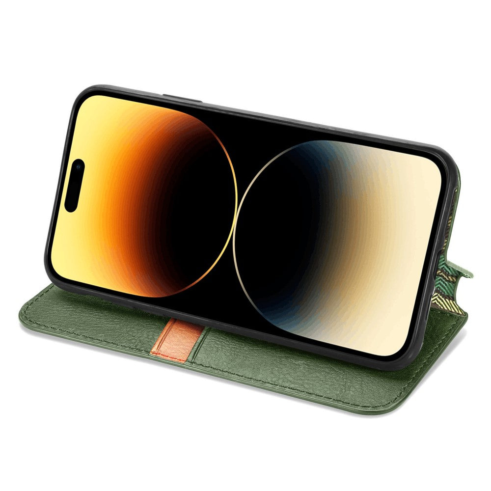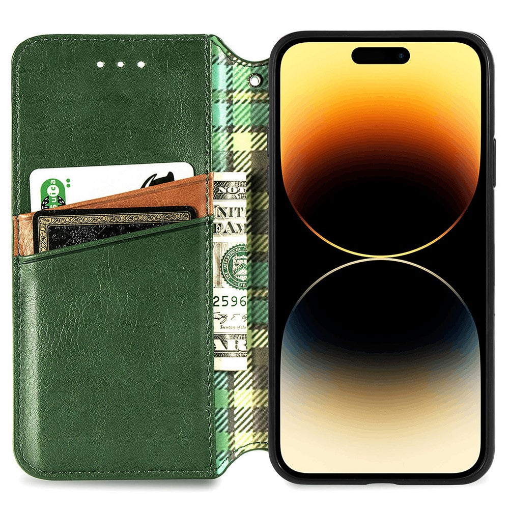 Lederhülle, mit einem stylischen rhombus Druck für iPhone 15 Pro Max Grün