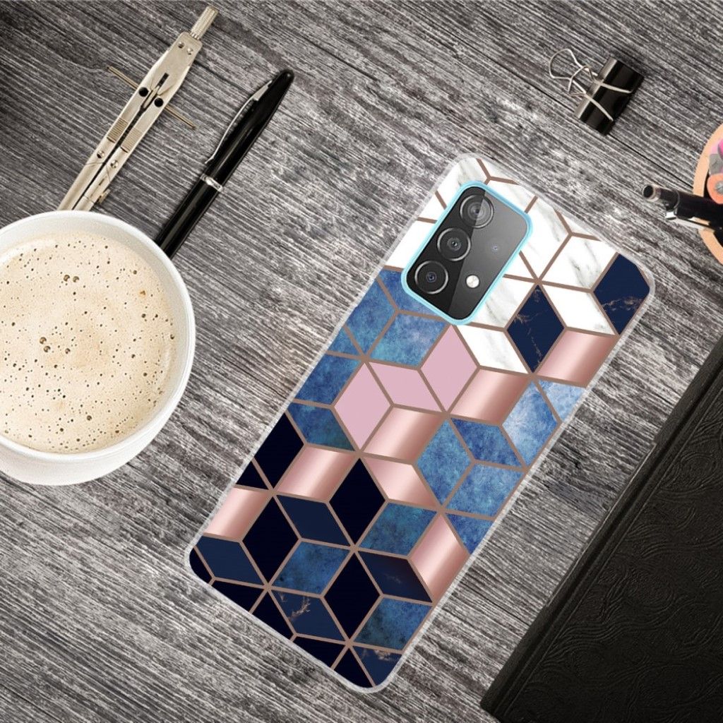 Marble Design Samsung Galaxy A32 handyhülle - Blau / Goldener Würfel