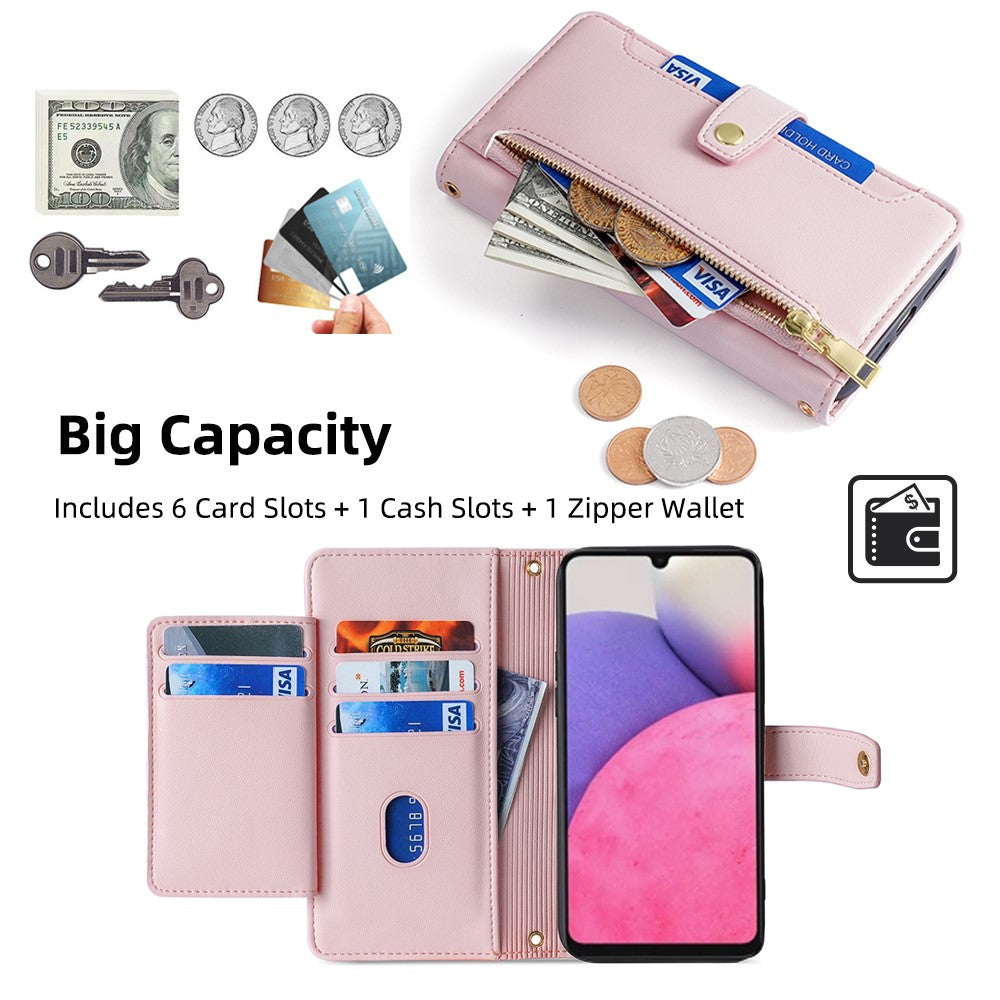 • Große Kapazität mit 6 Kartenfächern, 1 Bargeldfach und 1 Reißverschlussfach