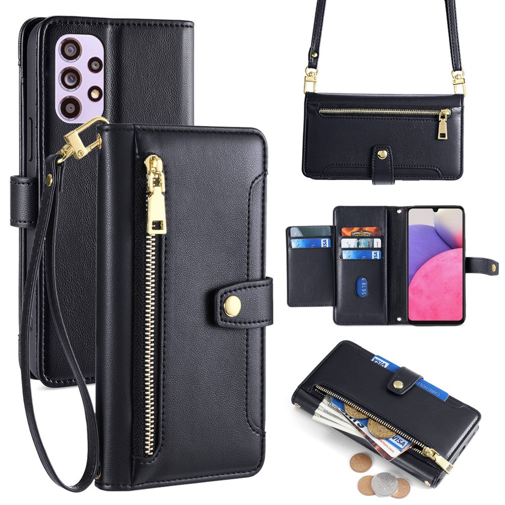 Samsung Galaxy A33 5G veganes Leder Geldbeutel-Reißverschluss-Etui - Schwarz