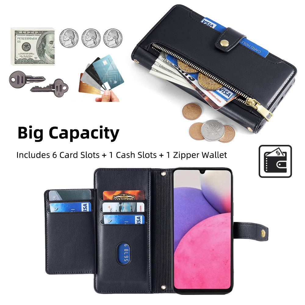 - Große Kapazität mit 6 Kartenfächern, 1 Bargeldfach und 1 Reißverschlussfach