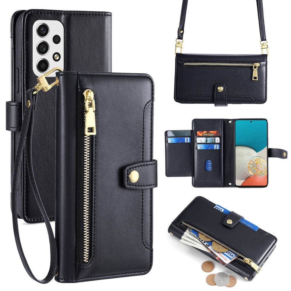 Samsung Galaxy A53 5G veganes Leder Geldbeutel-Reißverschluss-Etui - Schwarz