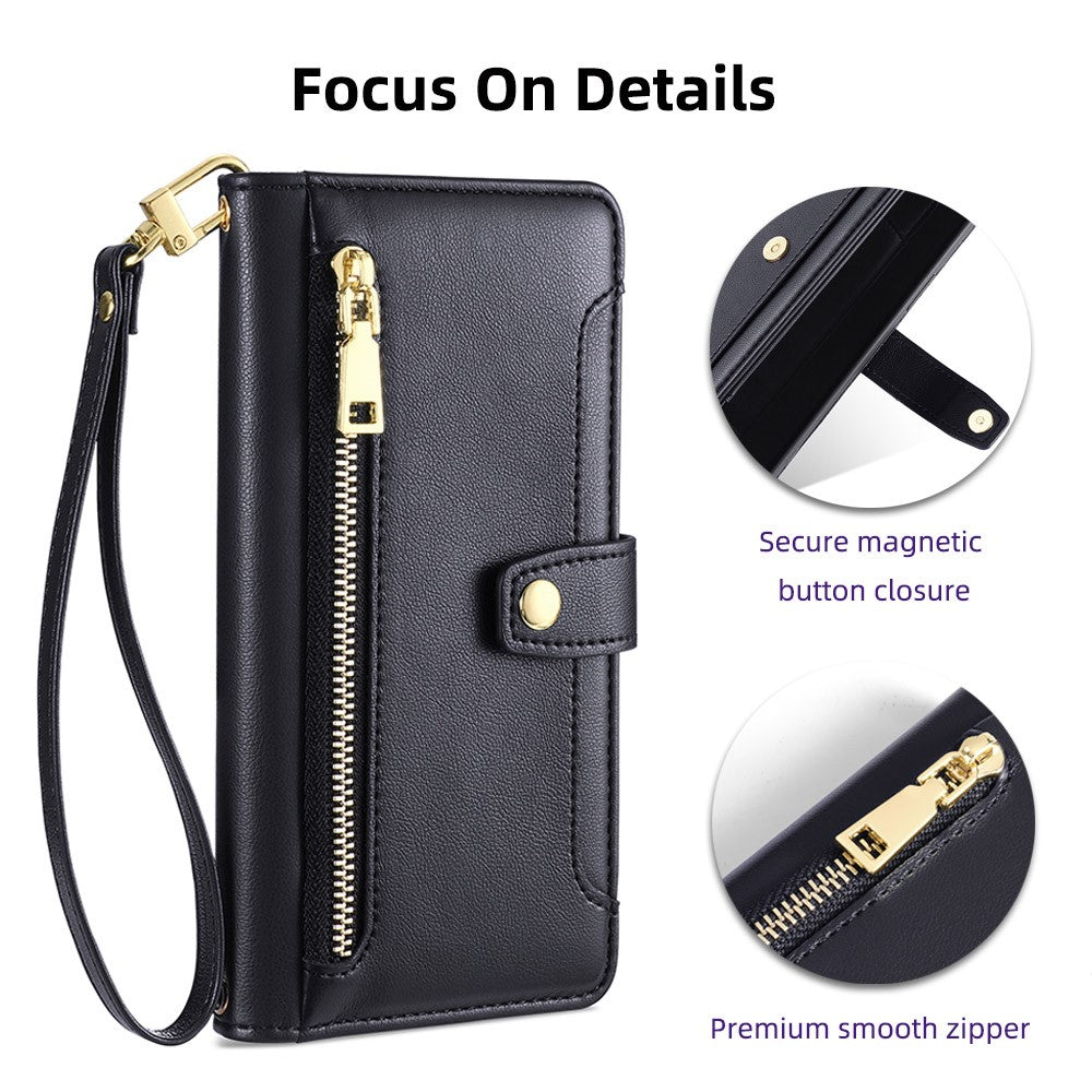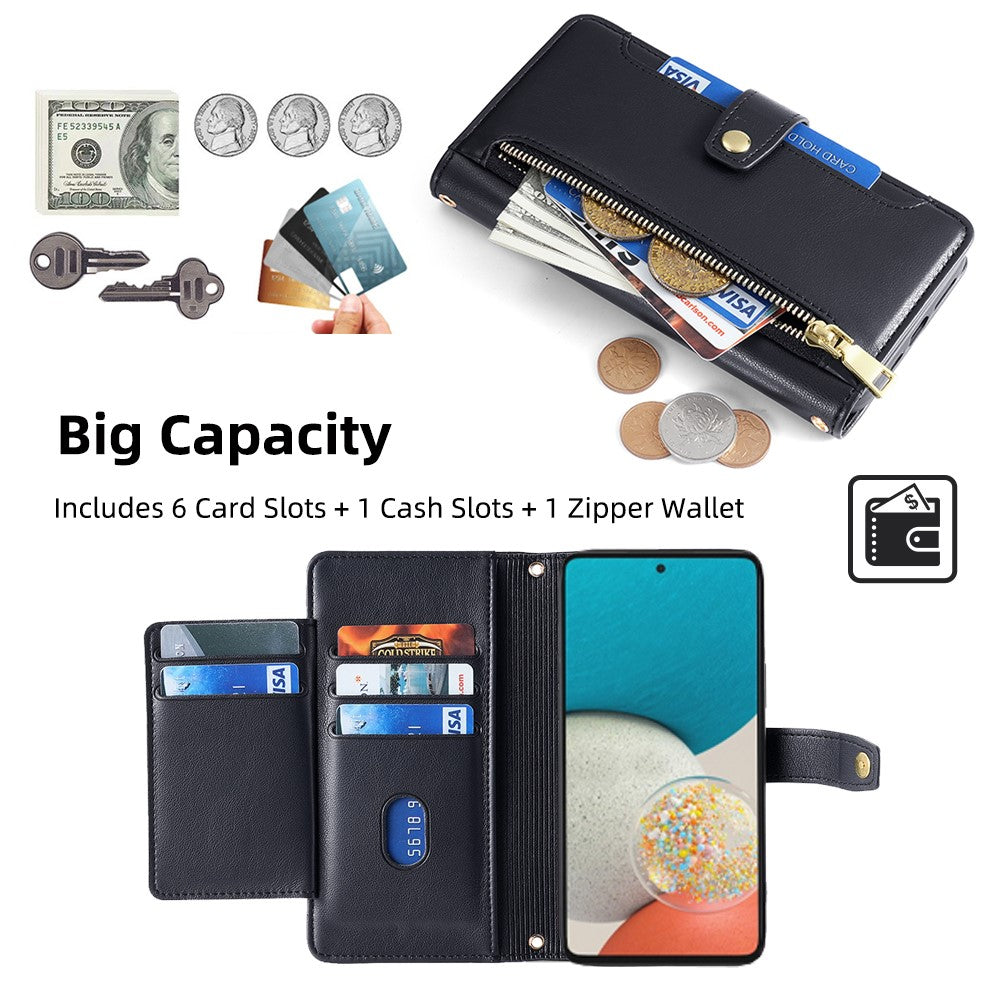 - Große Kapazität mit 6 Kartenfächern, 1 Bargeldfach und 1 Reißverschlussfach