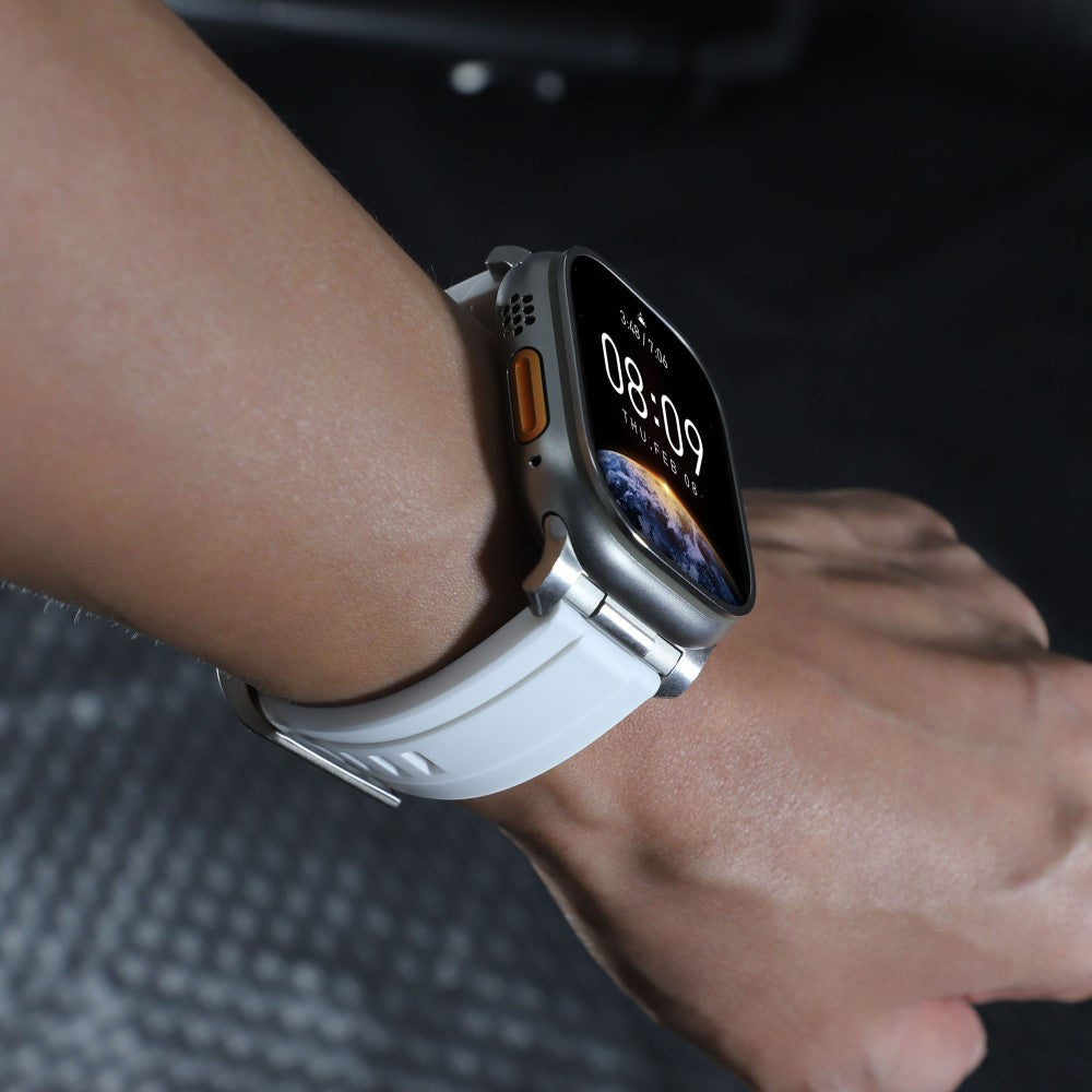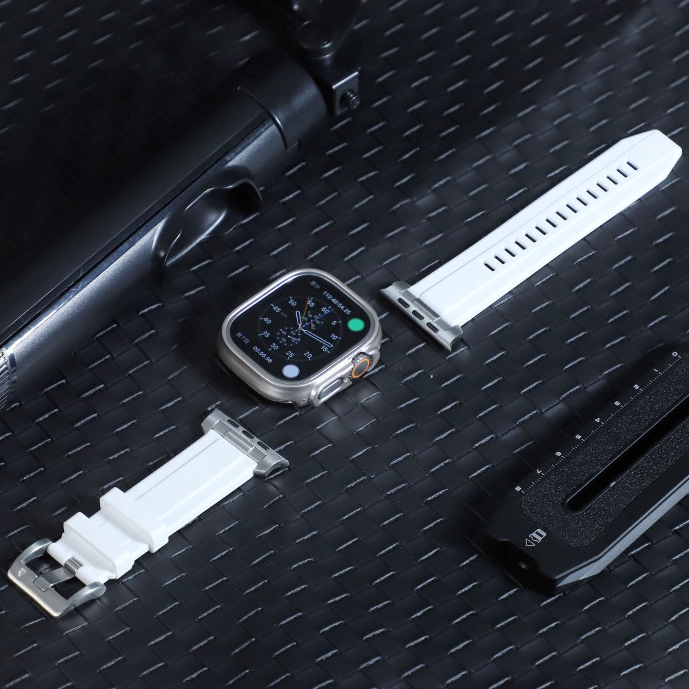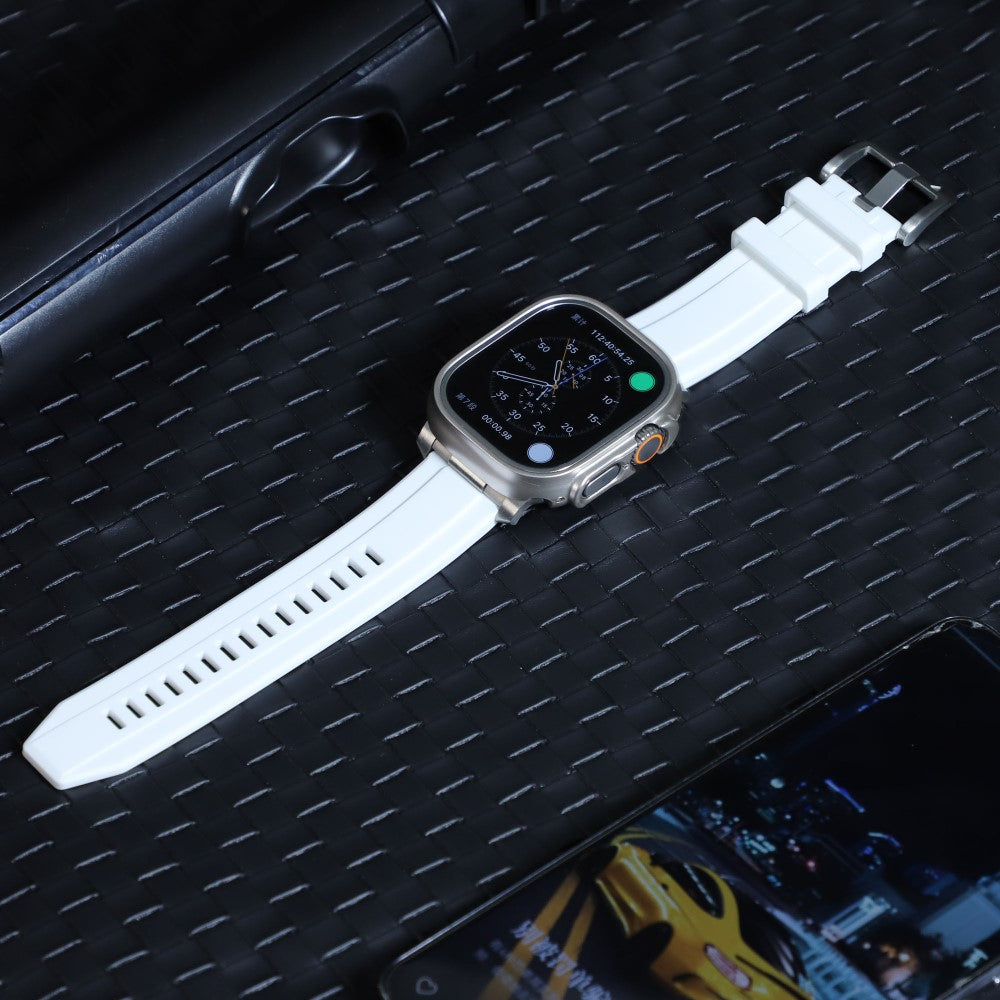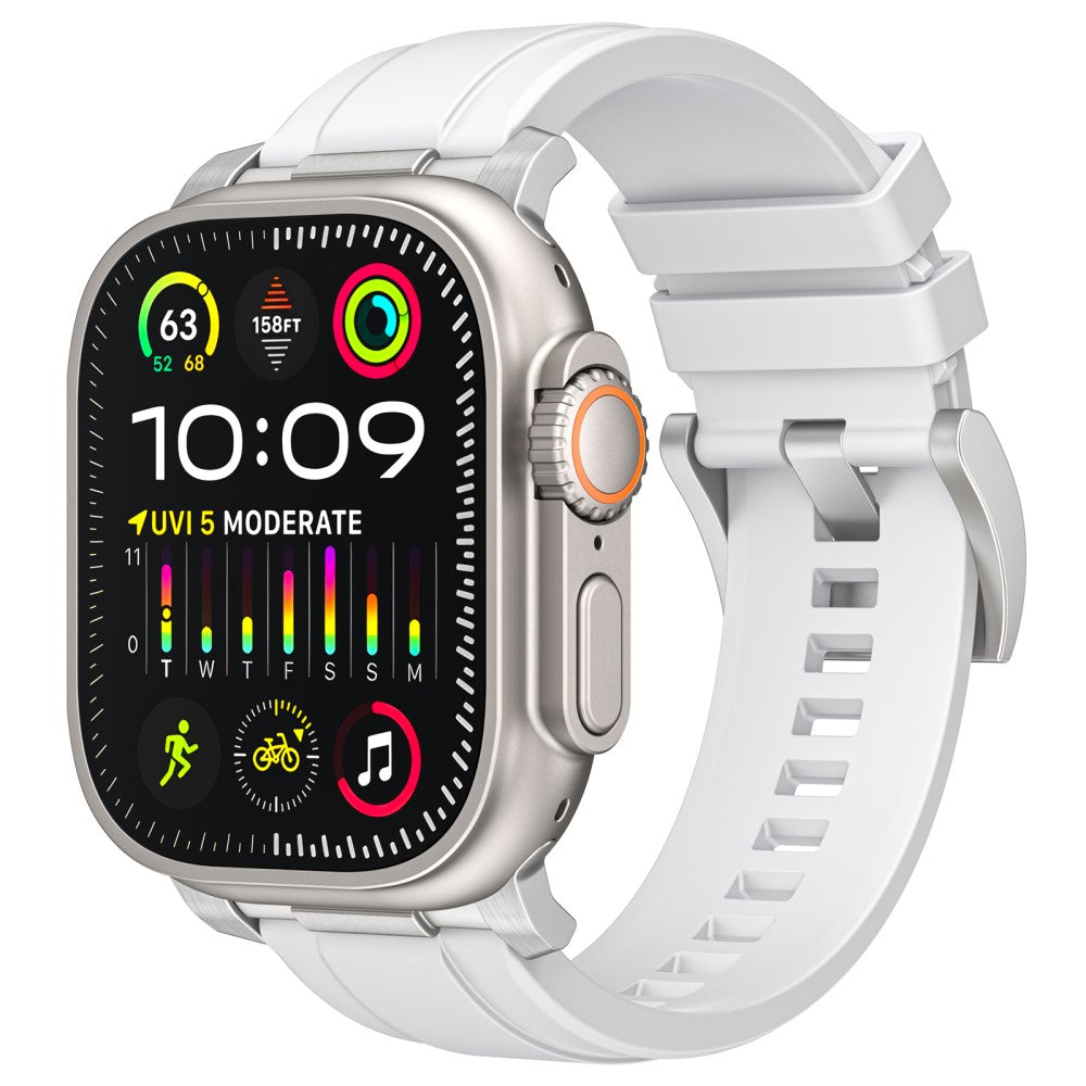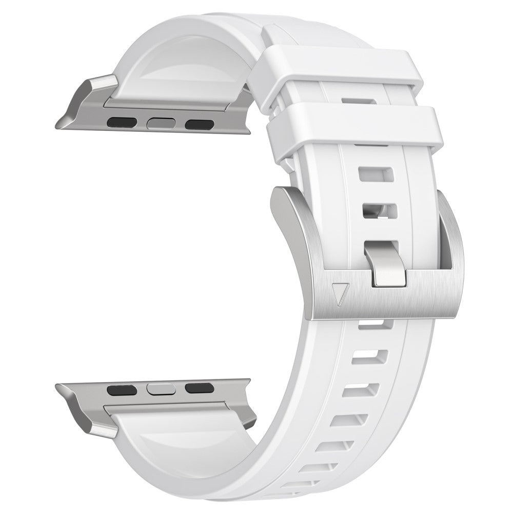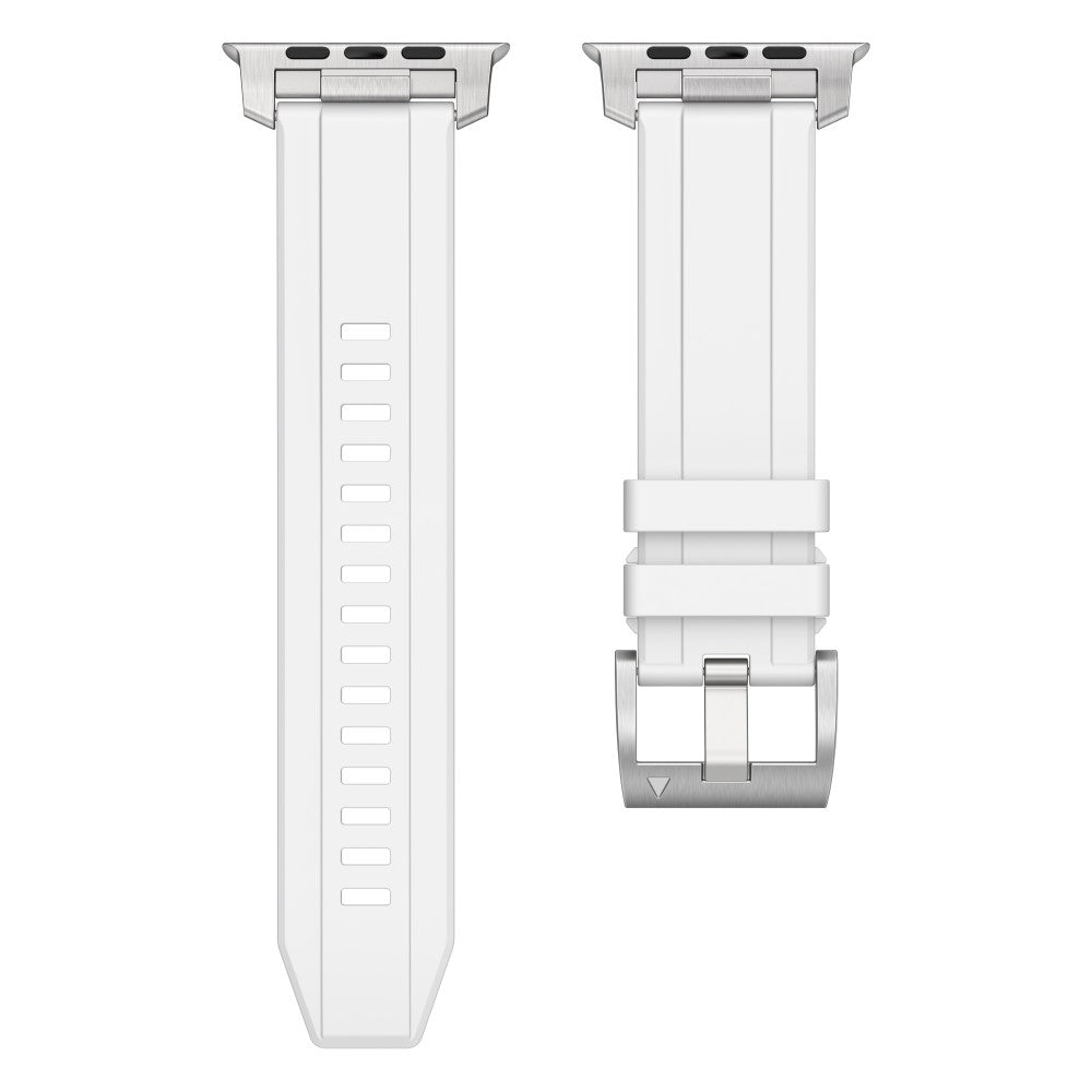 Silikonarmband Apple Watch Series 10 46mm / Ultra 2 Ultra 49mm / Series 9 8 7 45mm / SE (2023) SE (2022) SE 6 5 4 44mm / 3 2 1 42mm - Weiß+Silber Anschluss