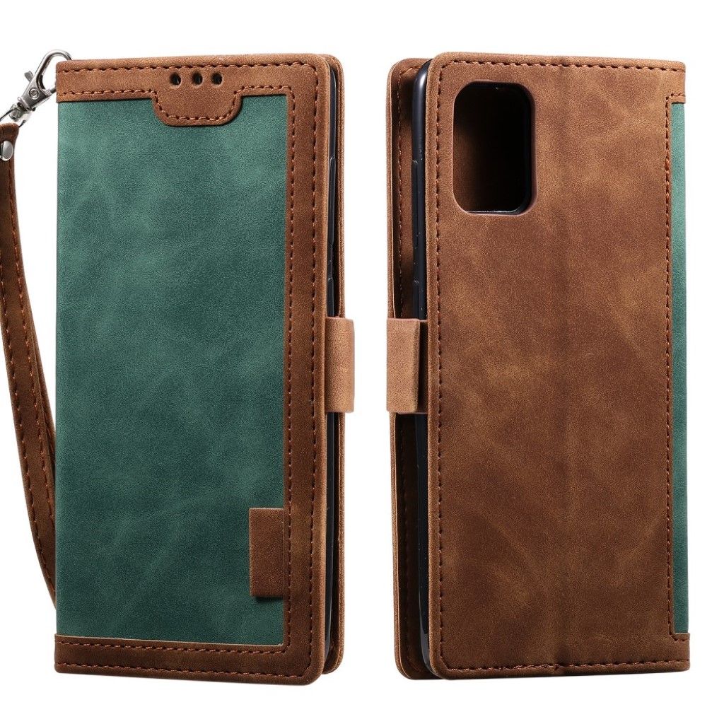 Surbian Samsung Galaxy A71 Leder Flip hülle - Dunkelgrün